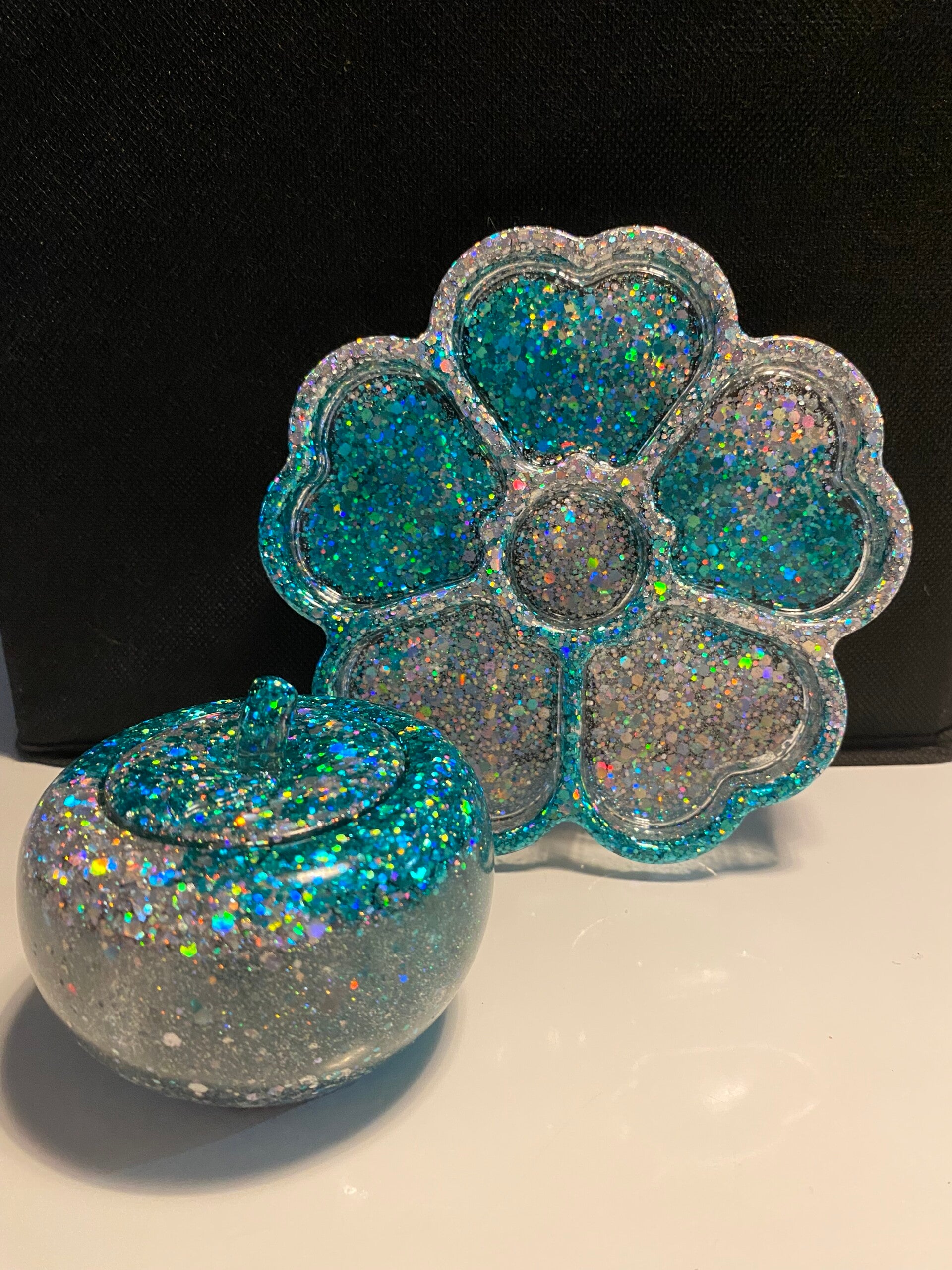 Resine epoxy et paillettes holographiques