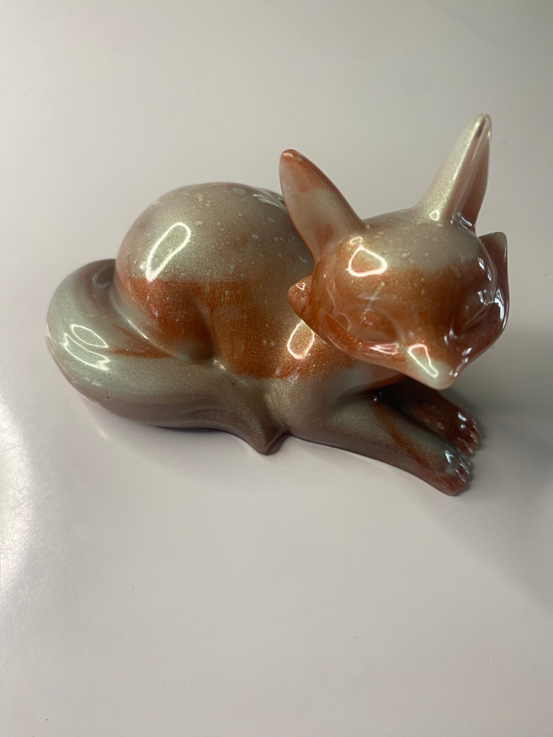 Petit renard couché, petit renard couché en résine époxy